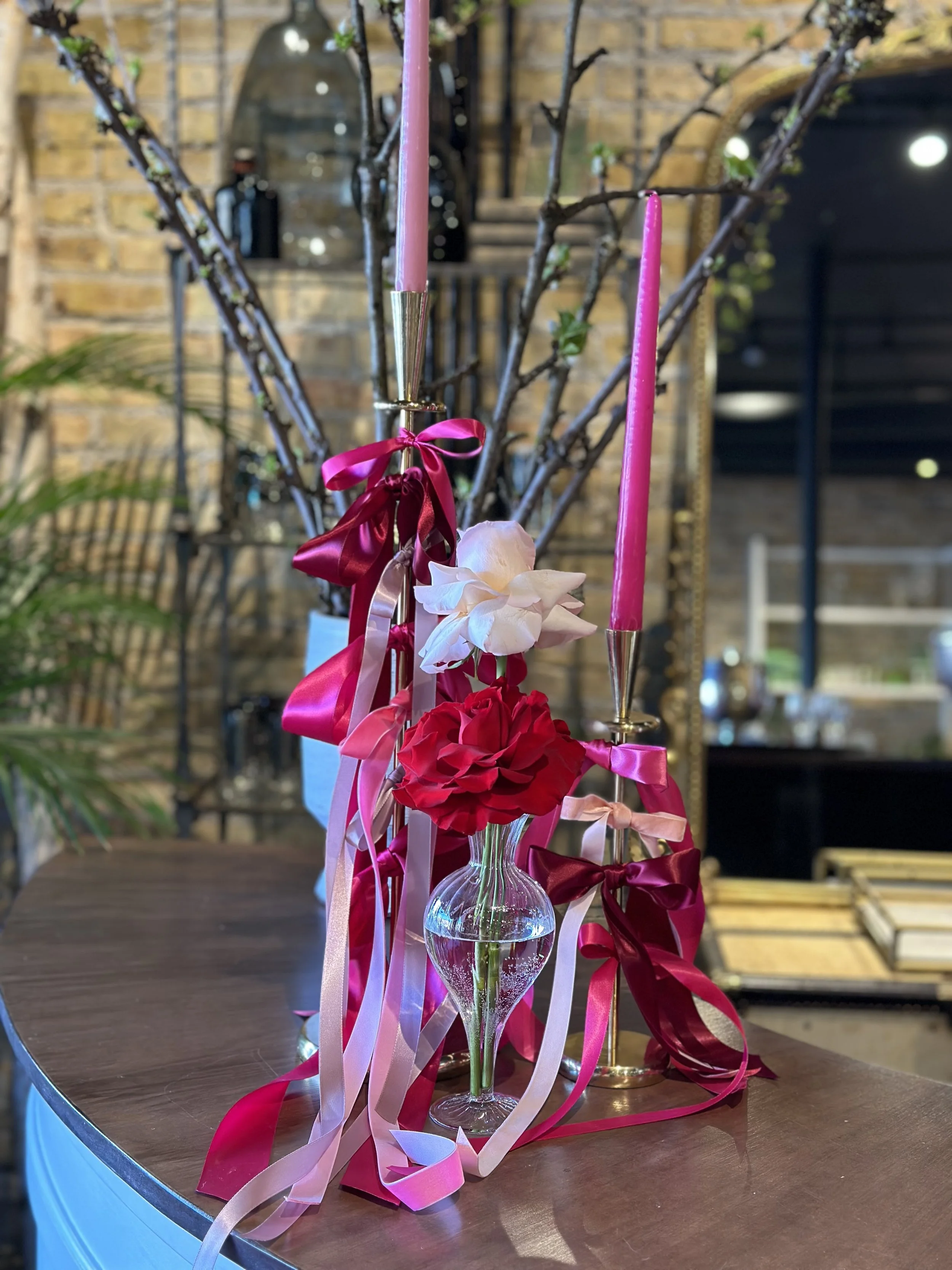 Small touches like ribbon tied around candlesticks or pops of pink and red throughout the table add personality without needing a lot of extra styling. You will see a few of those details in the photos here.
