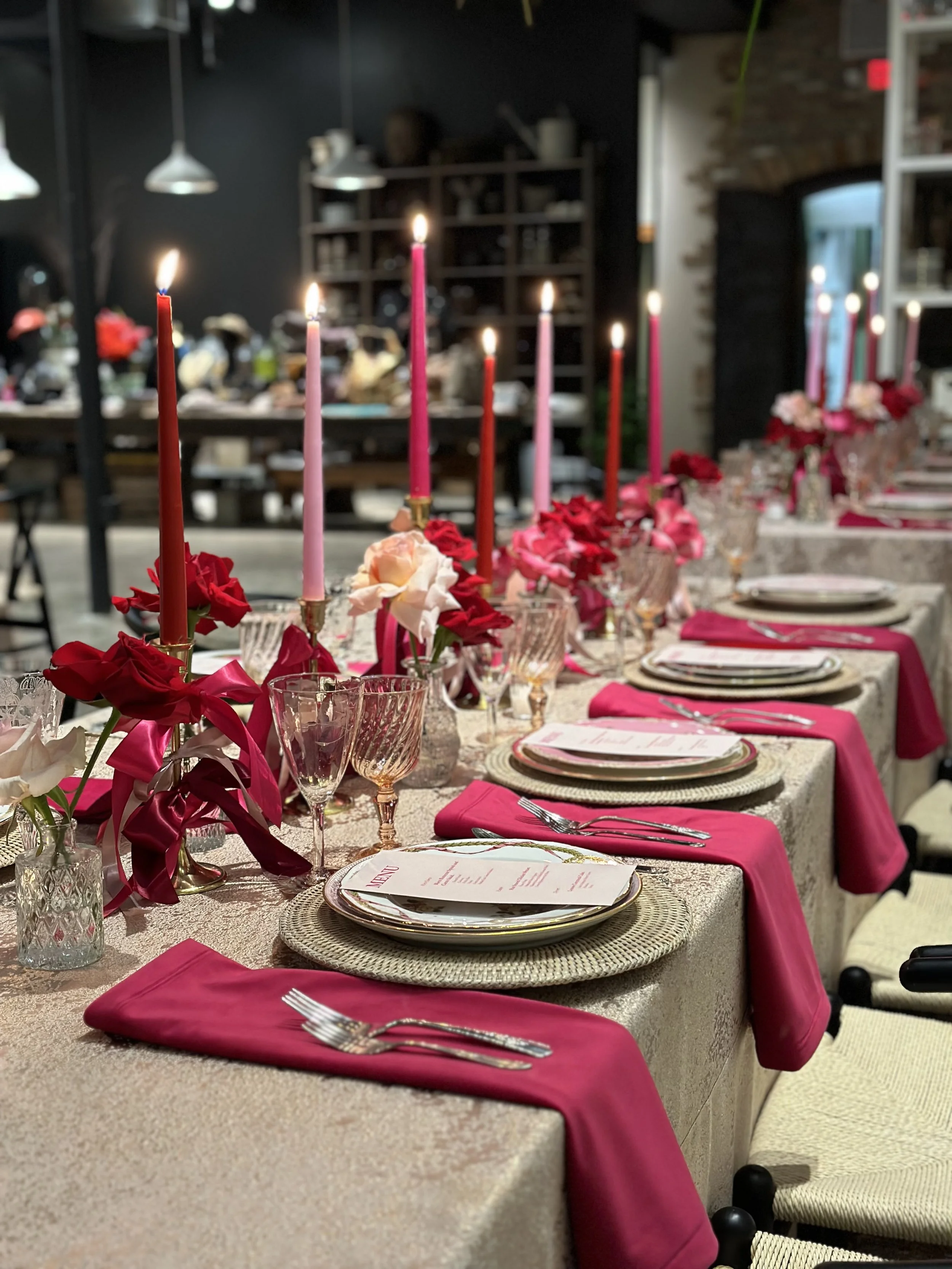 Valentine’s Day is the perfect excuse to have a little fun with your table. This is the season for pinks and reds, layered place settings, candlelight, and details that feel playful but still polished.