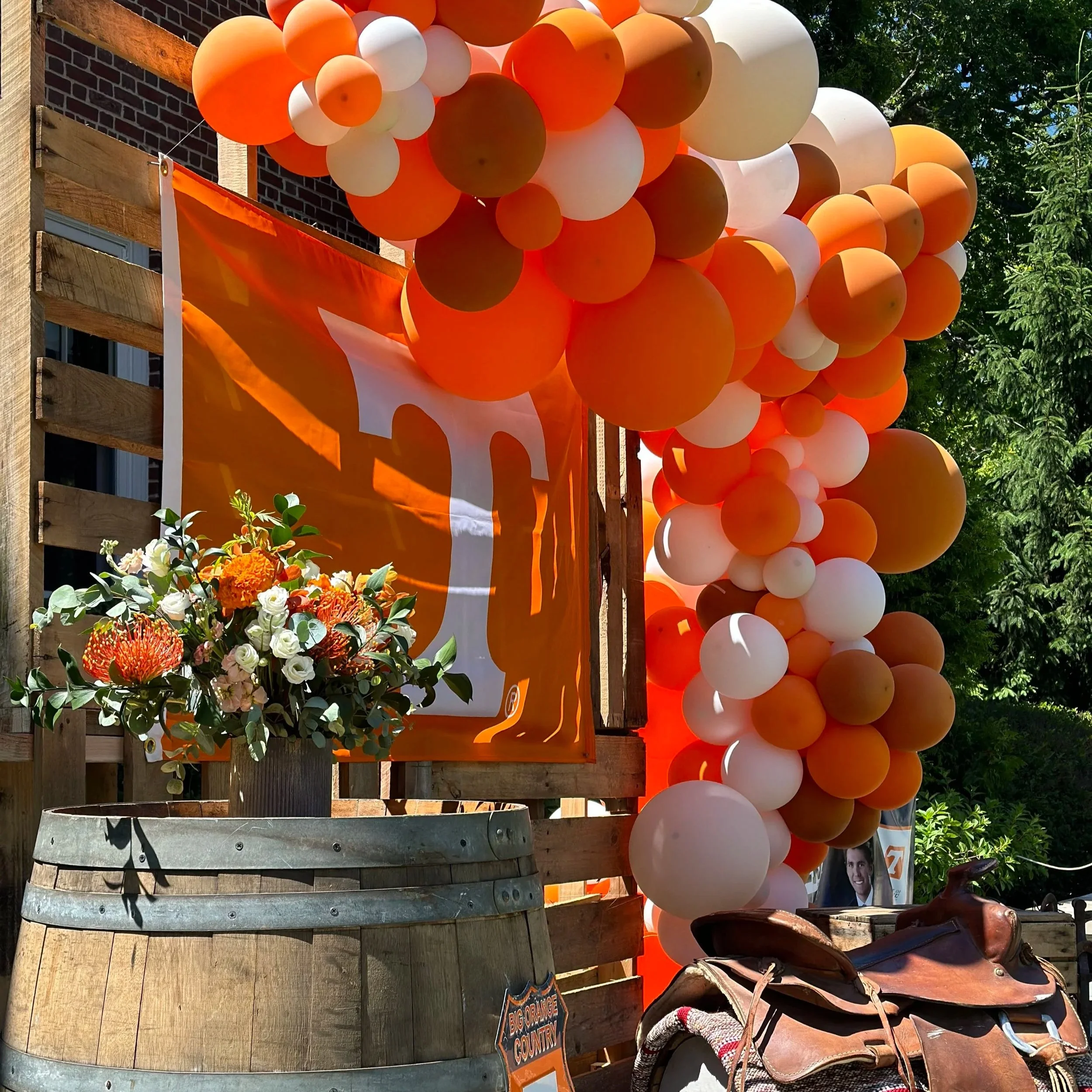 we love this backdrop for southern graduations, where it can be styled with our whiskey barrels, college flag, cowhide rug, and other elliestyled rentals to create a layered, high impact moment. whether used behind a bar, dessert display, or photo moment, it brings structure, depth, and unmistakable style.
