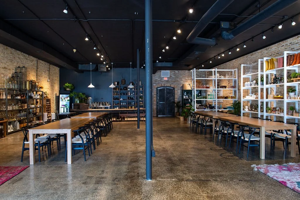 the layout is intentionally open and adaptable allowing the space to transform for seated dinners, cocktail style, gatherings, workshops, or presentations.