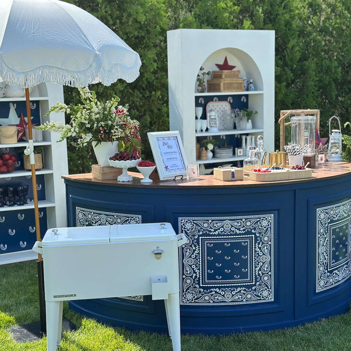 as you scroll through the photos below you’ll see just how many different ways this bar can show up. we can paint it any color to match your palette add peel and stick wallpaper inside the panels for texture or pattern or apply custom vinyl with names logos drink menus or wording. it truly acts as a blank canvas and allows us to tailor the look to fit your event style whether that feels soft and romantic modern and minimal or bold and playful.