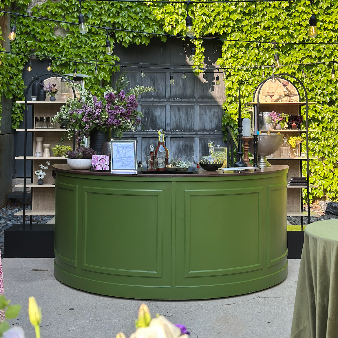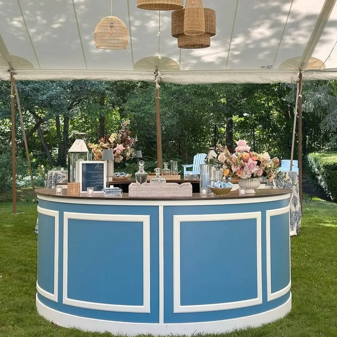 one of our most versatile pieces and a longtime client favorite our round bar is designed to transform with your event. from custom paint colors to wallpaper panels and vinyl details it’s a true blank canvas that allows us to create something unique every single time for celebrations of all kinds at elliestyled.