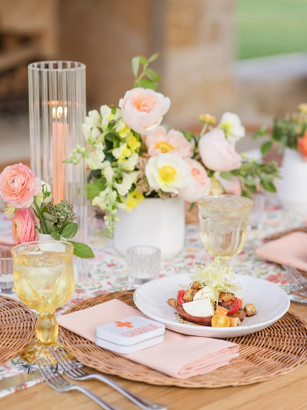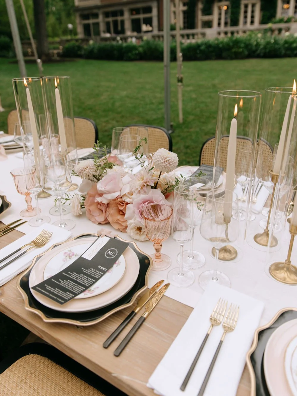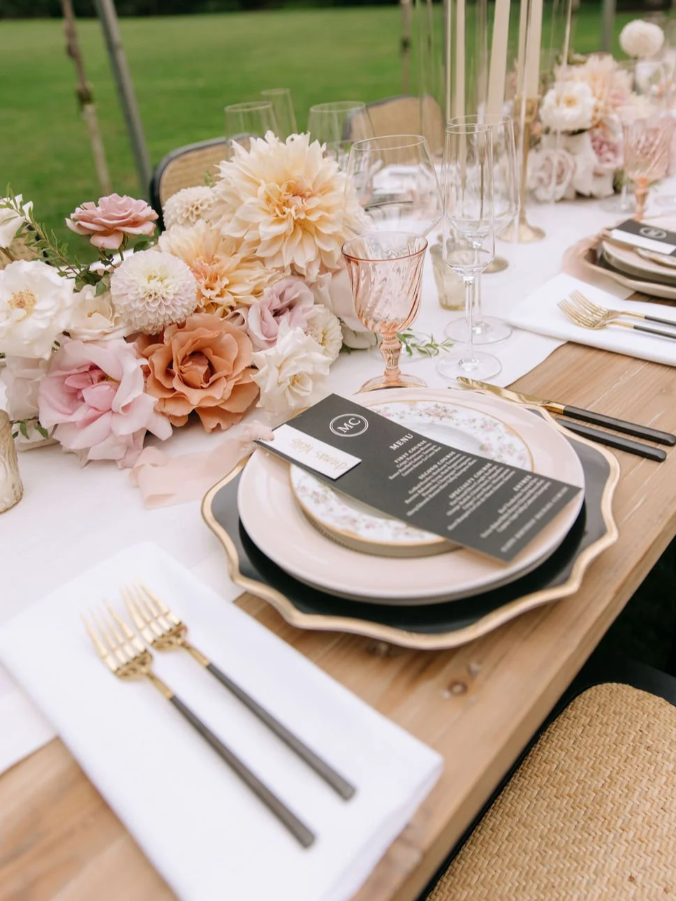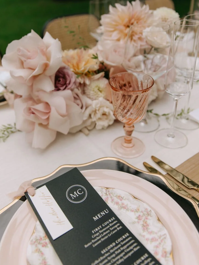 soft and romantic, blush glassware introduces a delicate, feminine touch without overpowering the table design.