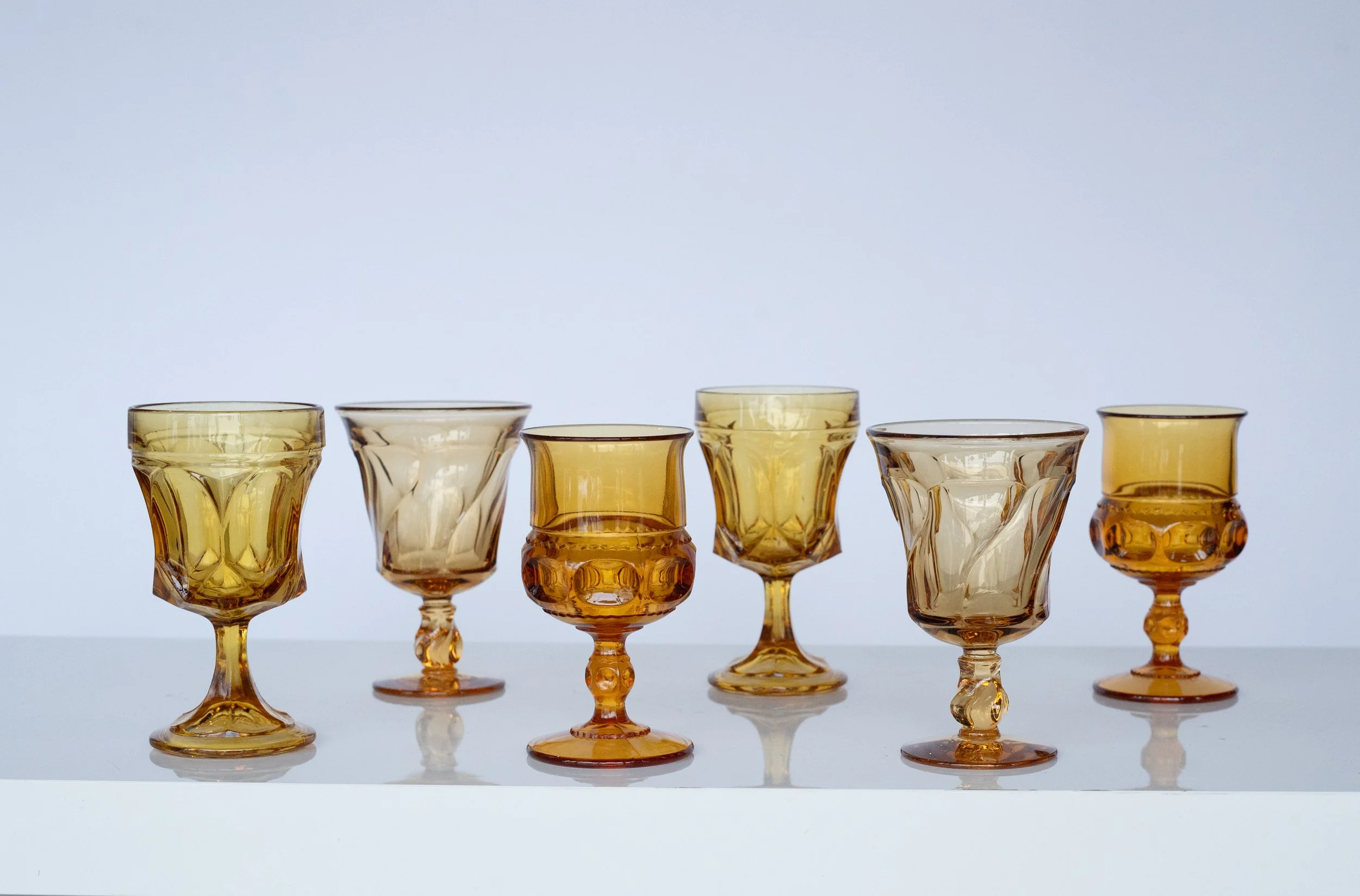 warm and glowing, amber goblets are beautiful for fall events and designs that lean into cozy, golden lighting.